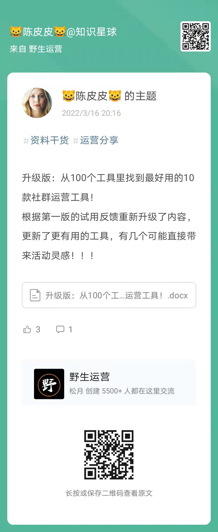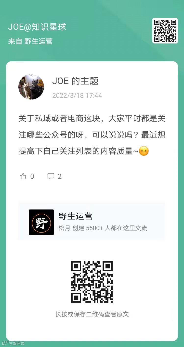 野生运营知识星球,每周会产生大量精华内容,每周一为你整理《野生运营:一周星球内参》,让你不错过任何一条有价值的信息。话不多说,这就开始!