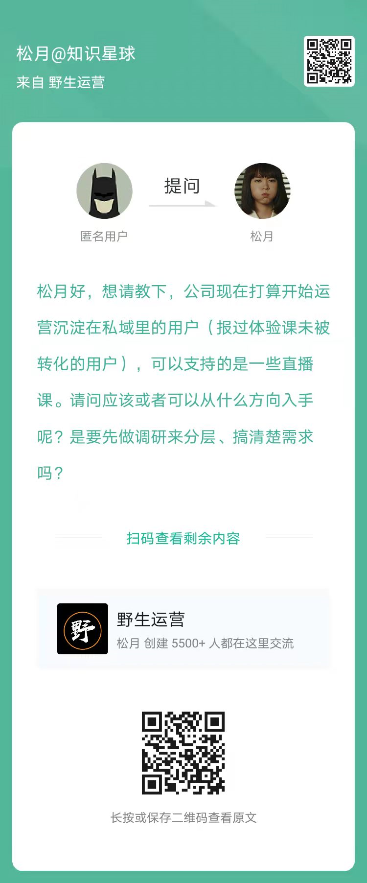 2、提问:公司现在打算开始运营沉淀在私域里的用户,请问应该或者可以从什么方向入手呢?(扫码看全文)