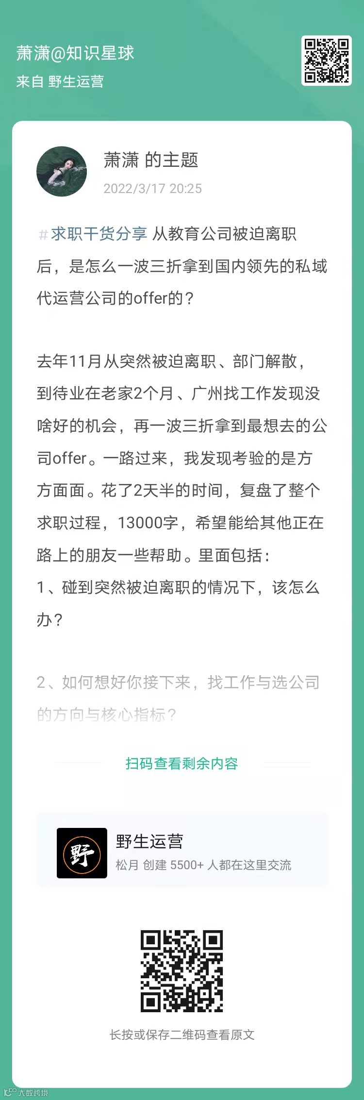 13、萧潇:从教育公司被迫离职后,如何拿到国内领先的私域代运营公司的offer的(扫码看全文)