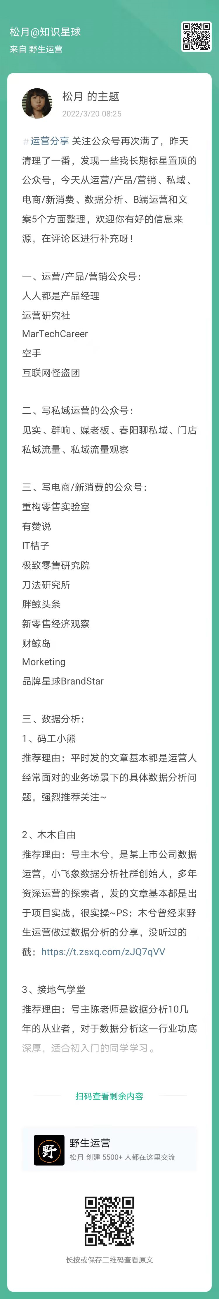 19、松月:一些我长期标星置顶的公众号(扫码看全文)