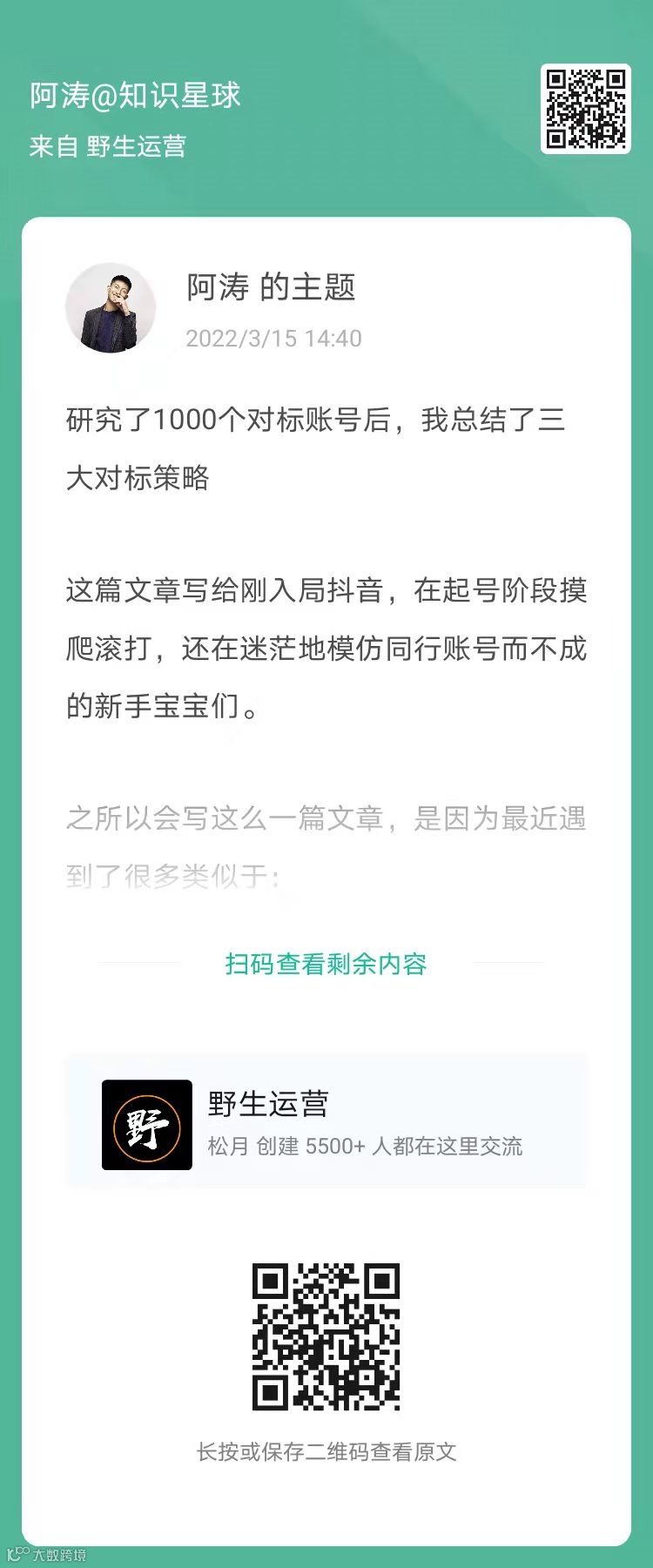 5、阿涛:研究了1000个对标账号后,我总结了三大对标策略(扫码看全文)
