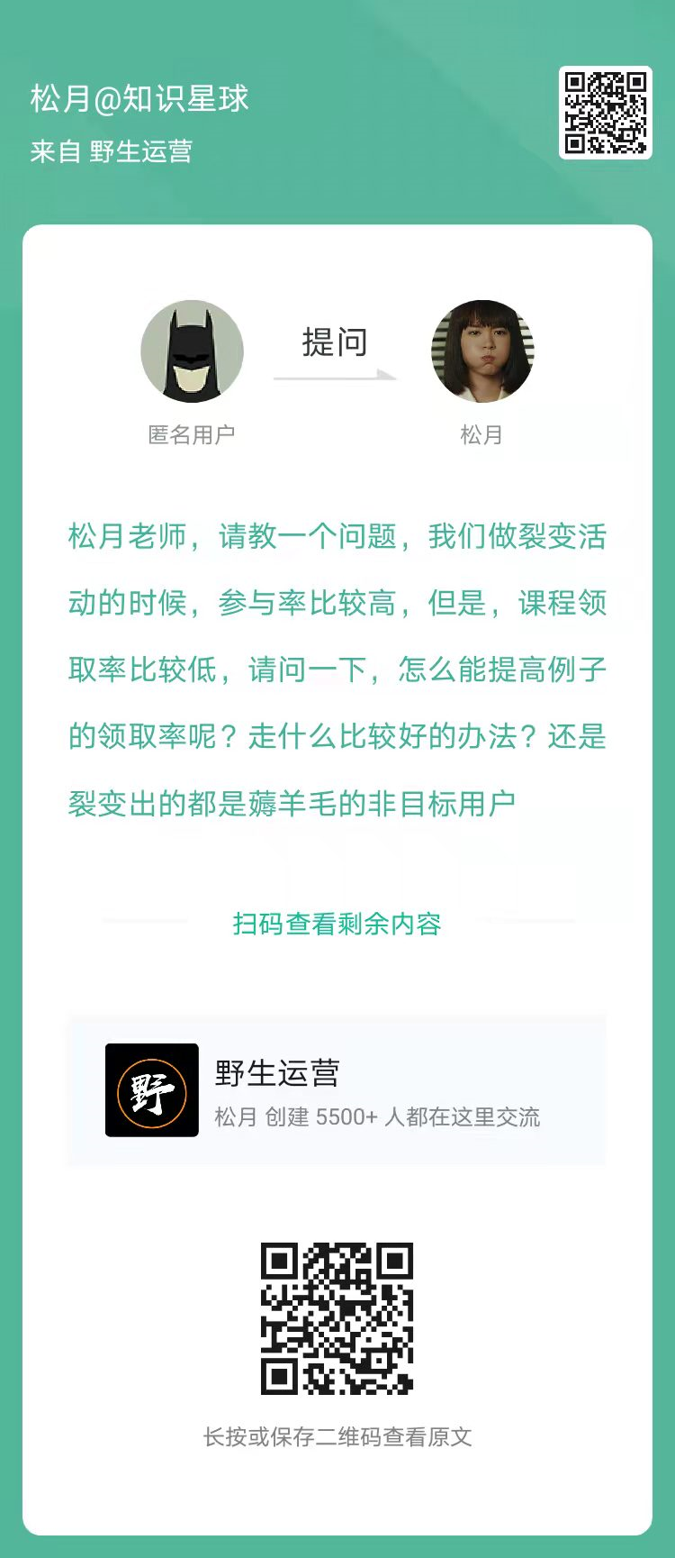 6、提问:做裂变活动的时候,参与率比较高,但是课程领取率比较低,请问有什么办法?(扫码看全文)