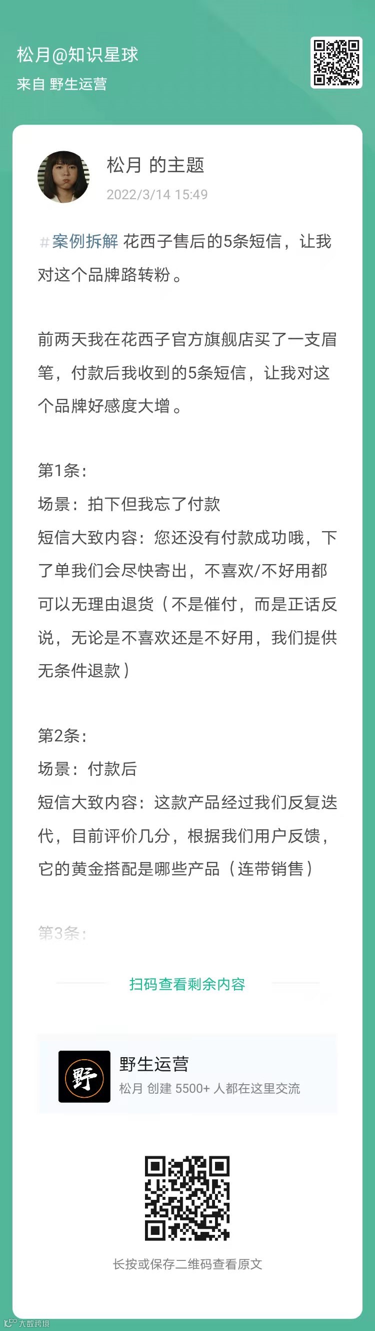 3、松月:花西子售后的5条短信,让我对这个品牌路转粉(扫码看全文)