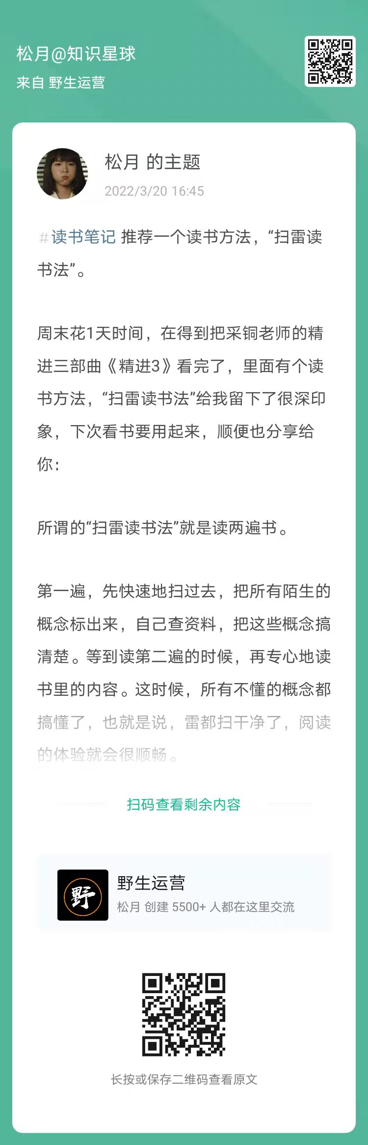 21、松月:推荐一个读书方法,“扫雷读书法”(扫码看全文)