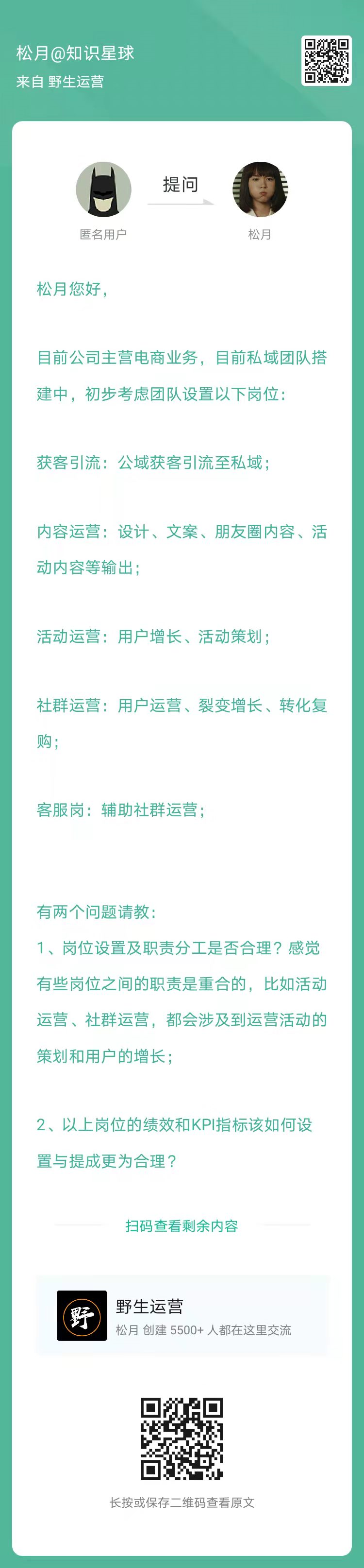 1、松月:私域团队建议和考核标准(扫码看全文)