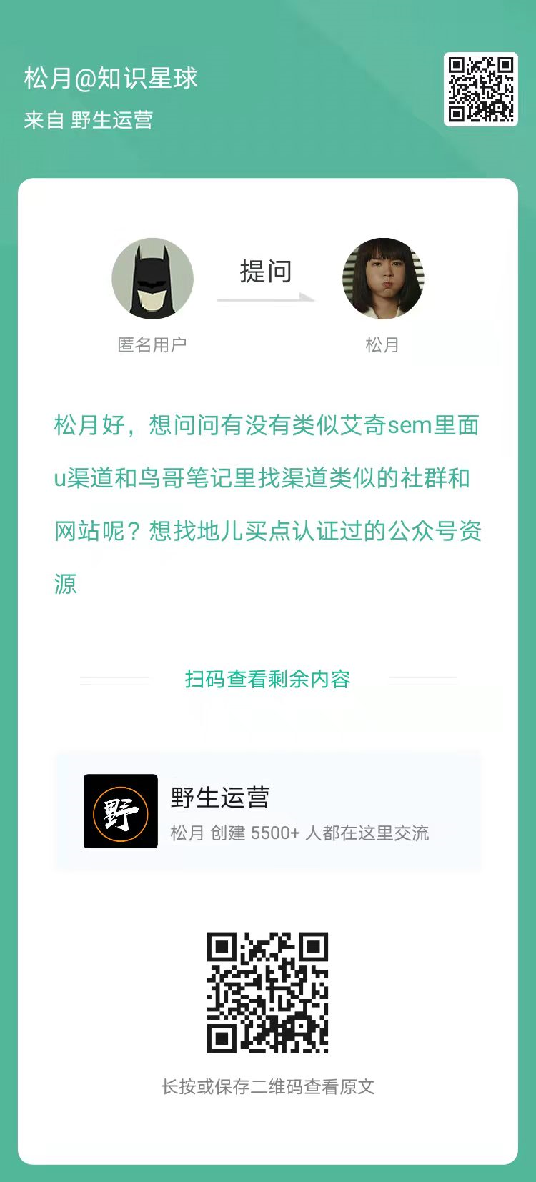 3、提问:有没有类似艾奇sem里面u渠道和鸟哥笔记里找渠道类似的社群和网站呢?(扫码看全文)