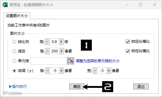 ④:微调,通过微调图片高和宽的像素调整图片大小。