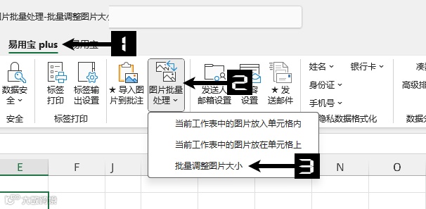 安装个易用宝,单击【易用宝plus】→【图片批量处理】→【批量调整图片大小】。