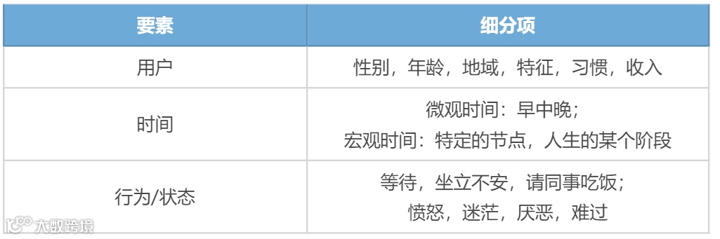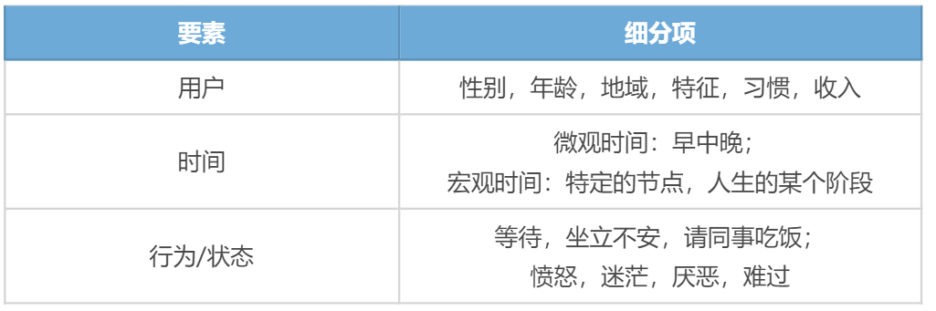 这四要素中的每一项都可以细化成更多项,也就产生了更多的场景,单一的场景并没有意义,我们要做的,就是要挖掘并找出某个场景下用户的真需求。