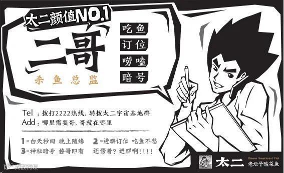 为了强化宇宙中二的概念,太二的视觉形象,以二老板和小二哥为核心IP内容,从店内到线上物料到线下营销,都统一采用了漫画形式,形成了太二独有的内容+视觉符号体系。