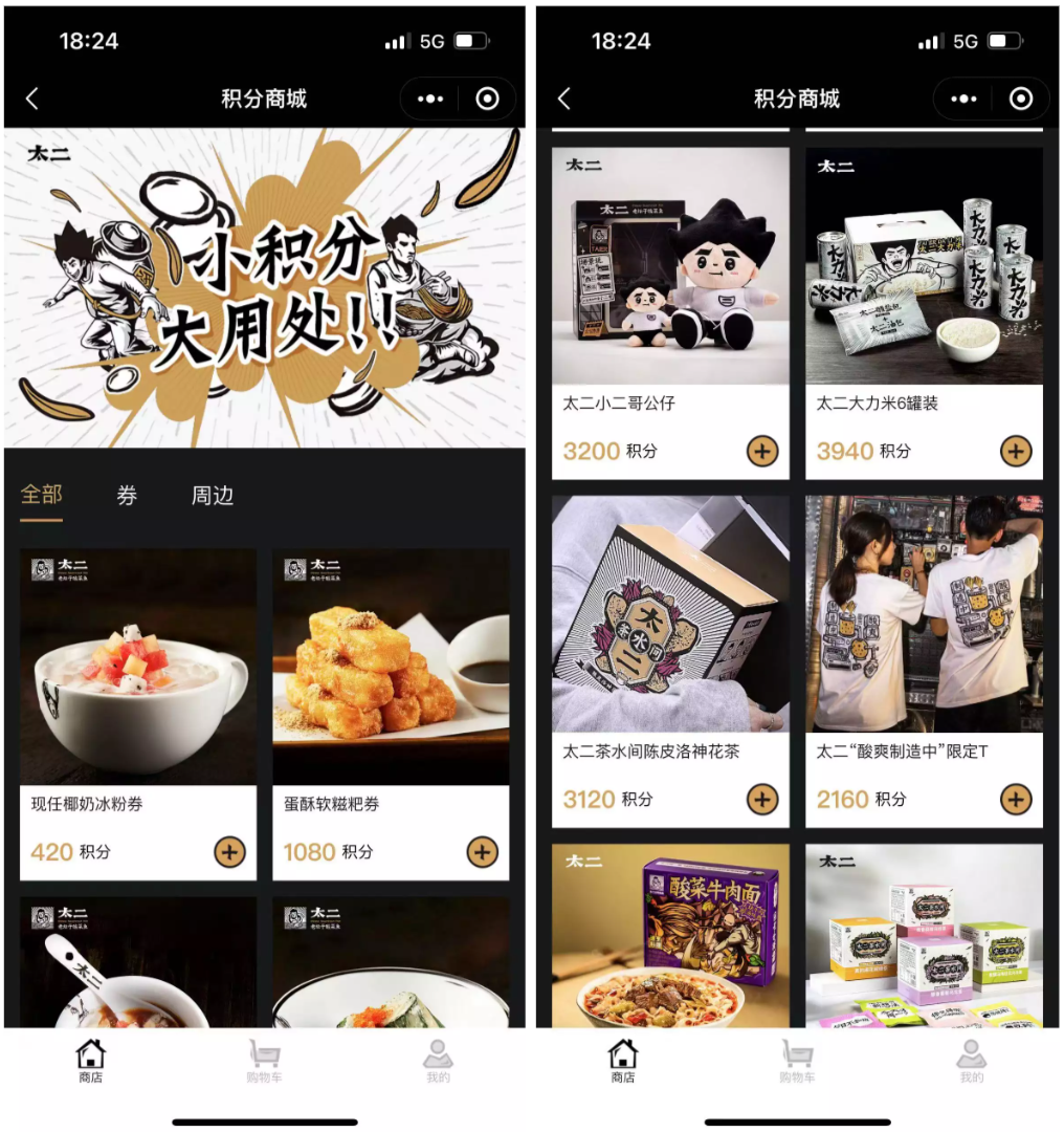 2、你可以用于兑换积分商城内的太二指定周边商品。
