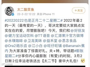 活动形式:节日特惠、上新优惠、暗号玩法、周年庆等 (2022.02.22太二节)
