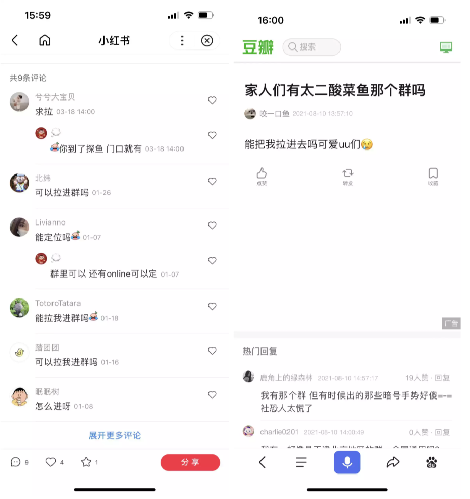有一些野生用户是不在社群的,当看到暗号玩法出来的时候,怀着强烈的好奇心理就会开始高度关注,该如何入群?如何获得暗号?百度/小红书/豆瓣/抖音均有许多用户自创内容与自传播的玩法。品牌的关注度大大的提高。