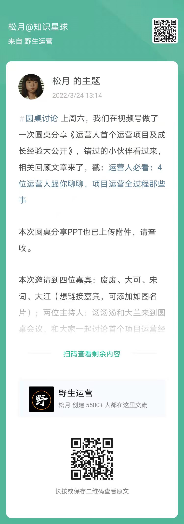 13、松月:圆桌分享《运营人首个运营项目及成长经验大公开》内容回顾(扫码看全文)