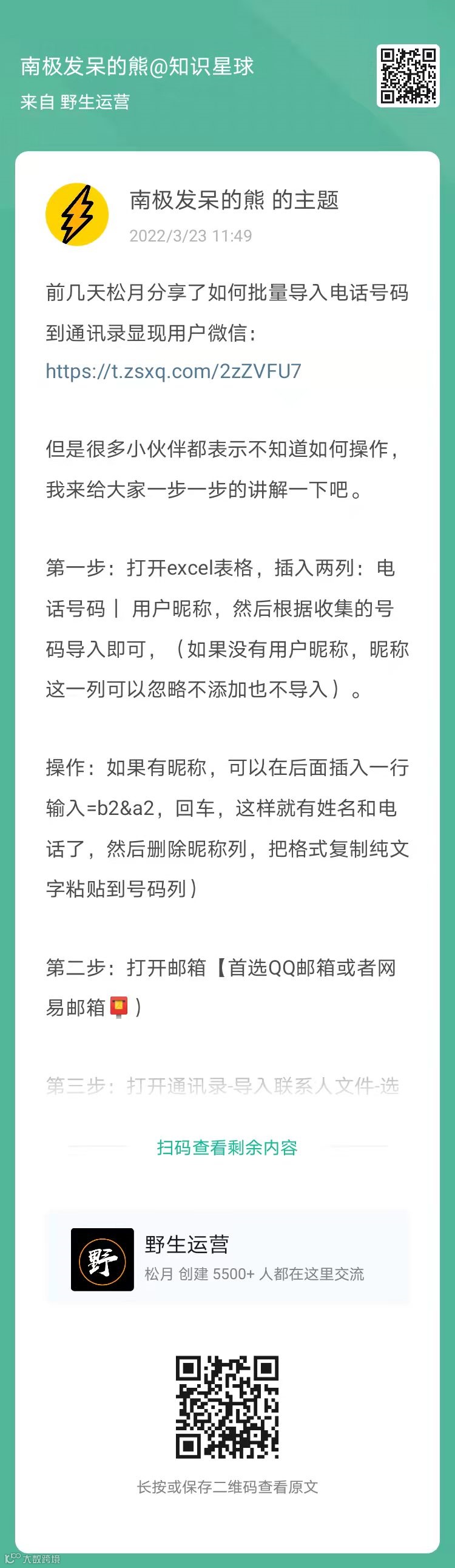 7、南极发呆的熊:如何批量导入电话号码到通讯录添加用户微信(扫码看全文)