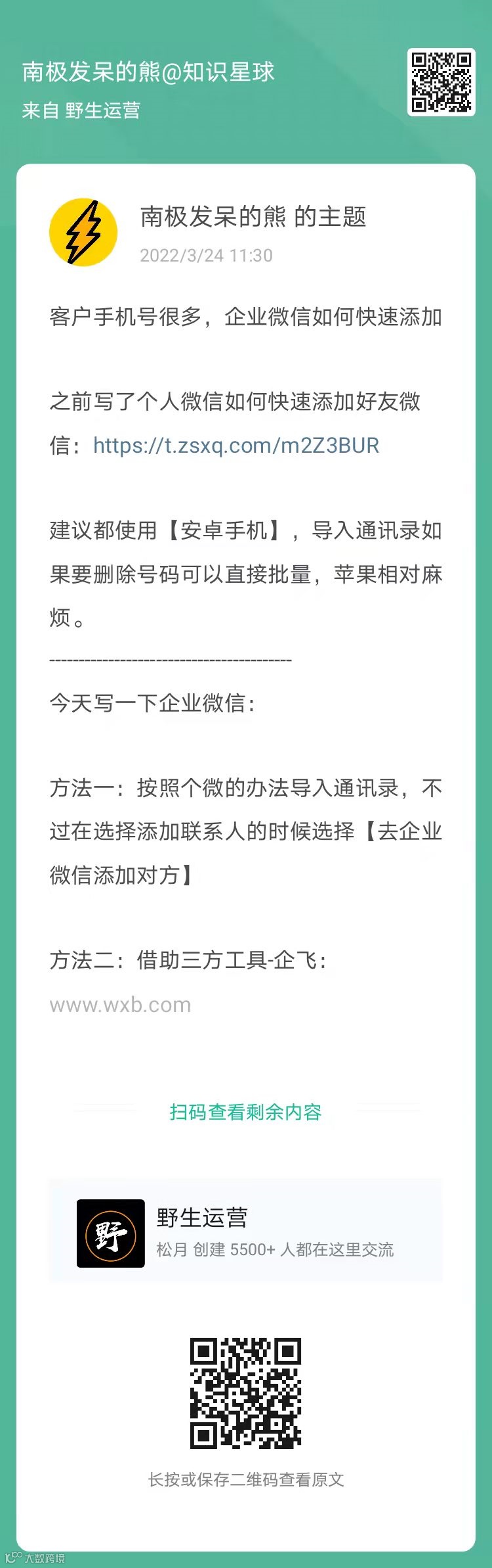 12、南极发呆的熊:企业微信如何快速批量导入电话号码添加用户(扫码看全文)
