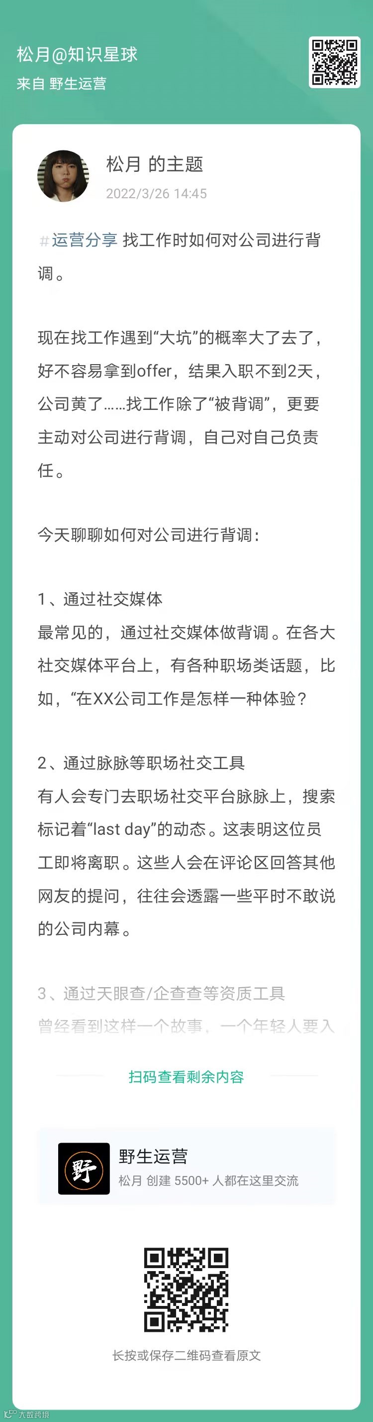 19、松月:找工作时如何对公司进行背调(扫码看全文)