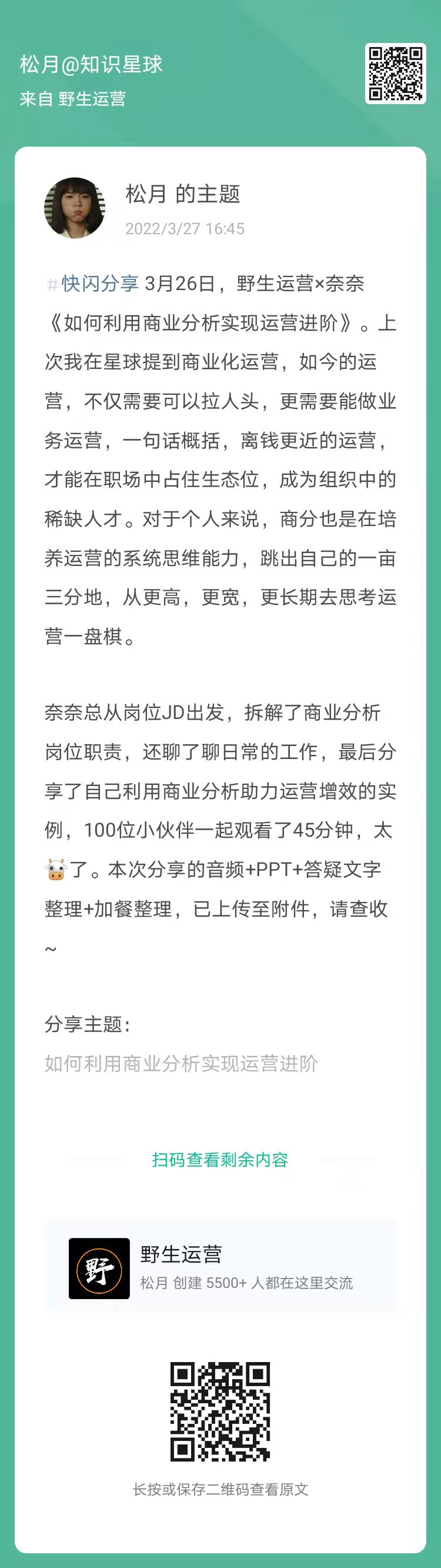 21、野生运营×奈奈《如何利用商业分析实现运营进阶》(扫码看全文)