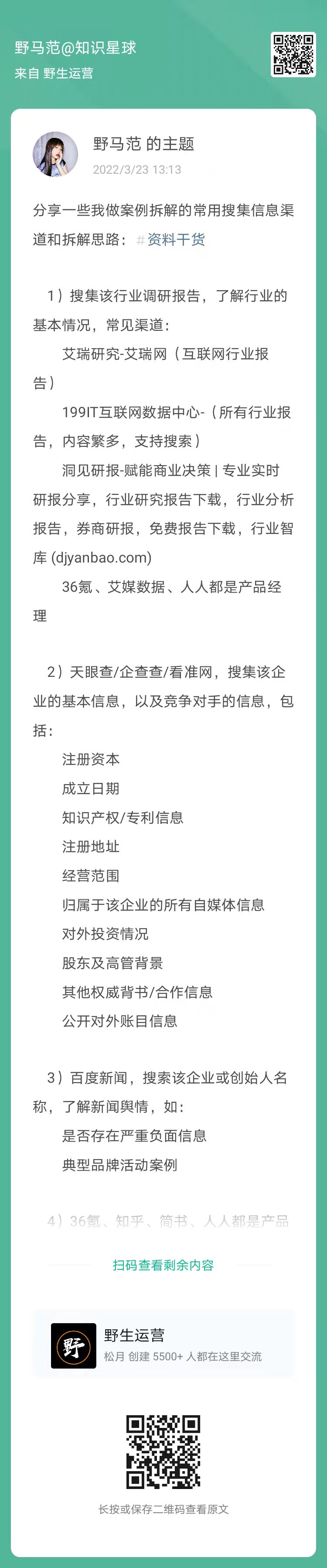 8、野马范:分享一些我做案例拆解的常用搜集信息渠道和拆解思路(扫码看全文)