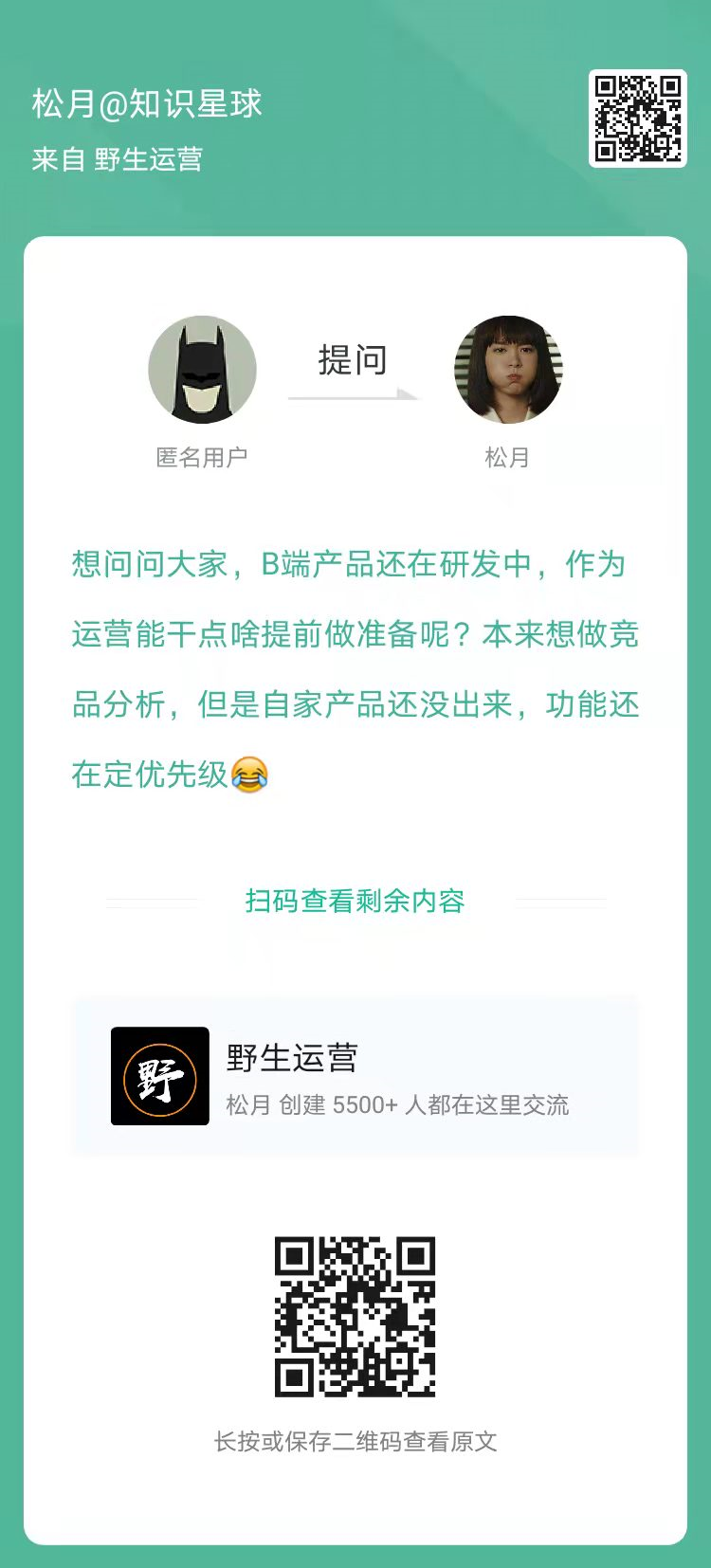 1、提问:B端产品还在研发中,作为运营能干点啥提前做准备呢?(扫码看全文)