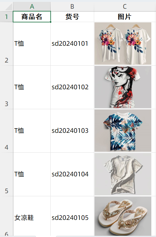 我们部门有这样一份商品信息表,包含着商品名称,货号和商品对应的图片,现在需要将这些商品图片导出,并且以对应的货号命名图片发给客户。