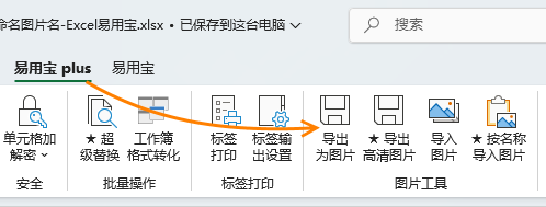 Excel中批量导出图片,单击Excel易用宝plus,导出为图片。