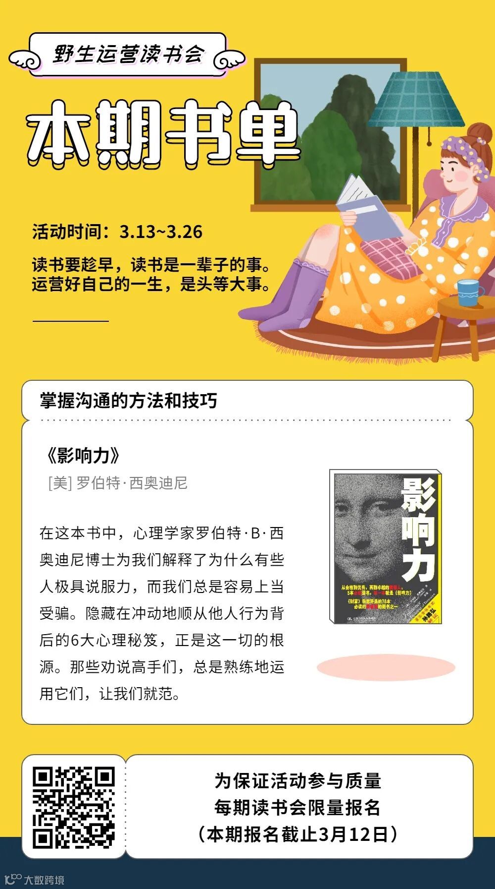 野生运营读书会目前已经运营了2年,共读了45本书,下期我们会一起共读《影响力》。报名读书会,就可免费获得以往45本书全部读书笔记,戳下方了解活动详情及报名: