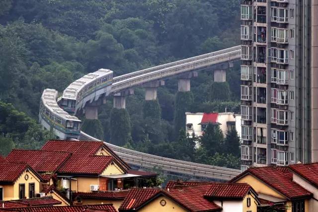 一列列轻轨列车“骑跨”在单根轨道上奔驰,犹如一条条“长龙”,时而跨江而过,时而穿山越岭,时而在繁华市区的楼宇间穿行……