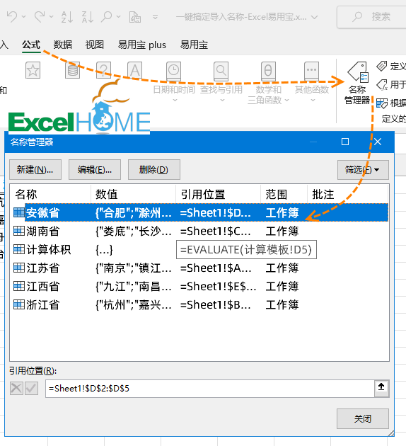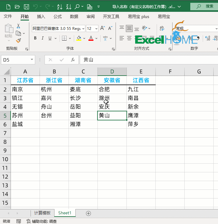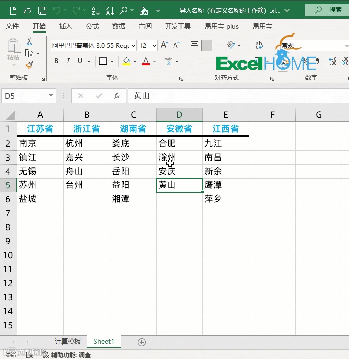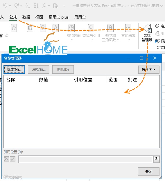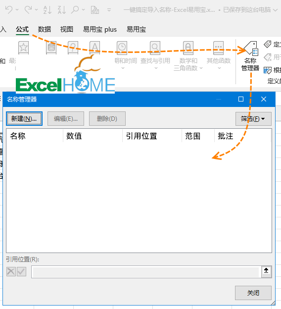 这样就可以将预设工作簿中的名称导入到没有名称的工作簿中了。