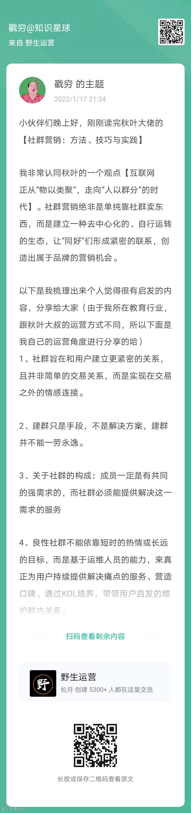 2、戳穷:秋叶老师一书【社群营销:方法、技巧与实践】,读后的收获整理(扫码看全文)
