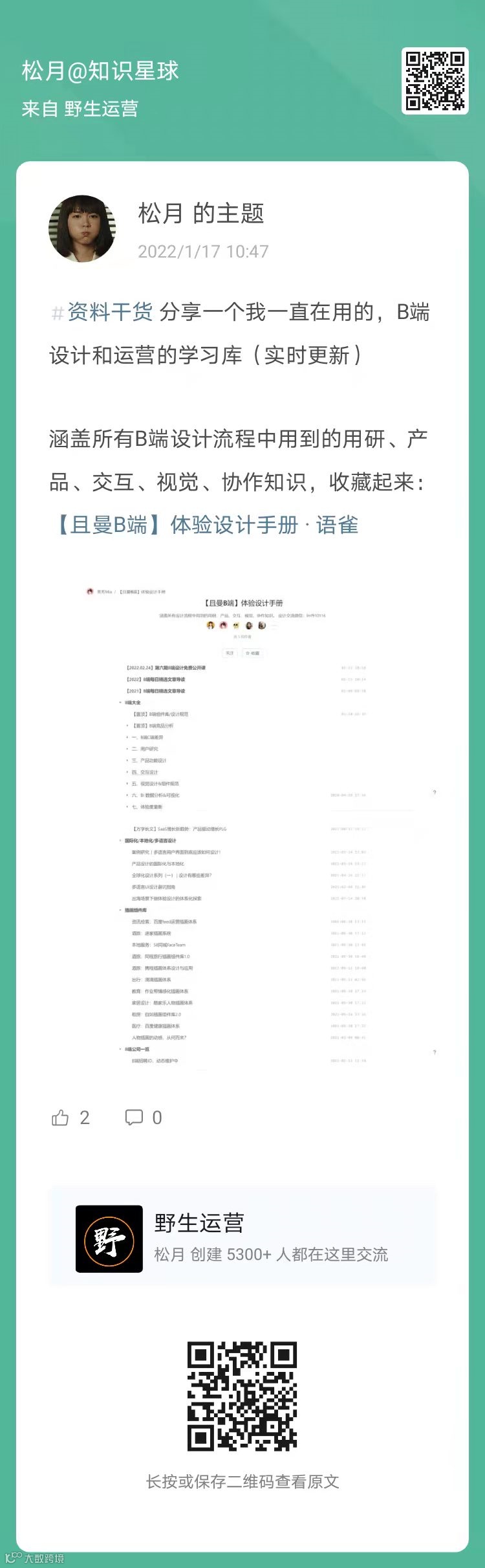 1、松月:B端设计和运营的学习库,实时更新(扫码看全文)
