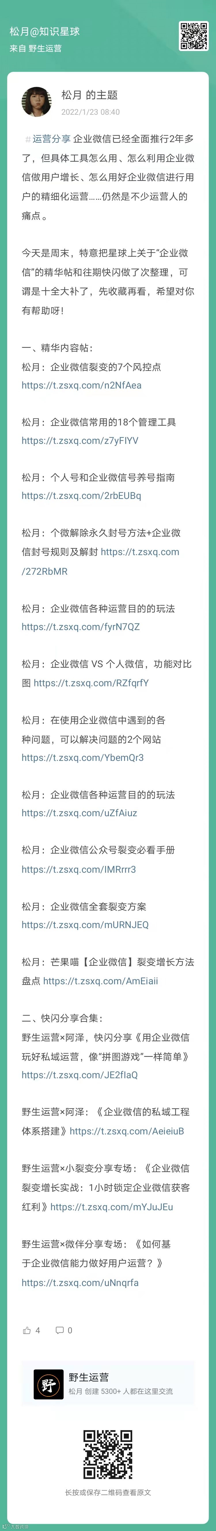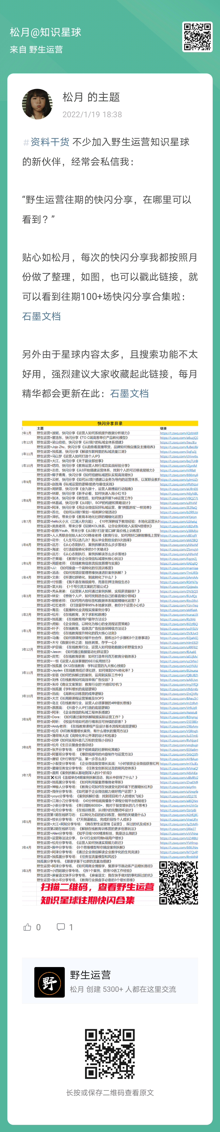 10、松月:野生运营知识星球,往期100+场快闪分享合集整理(扫码看全文)