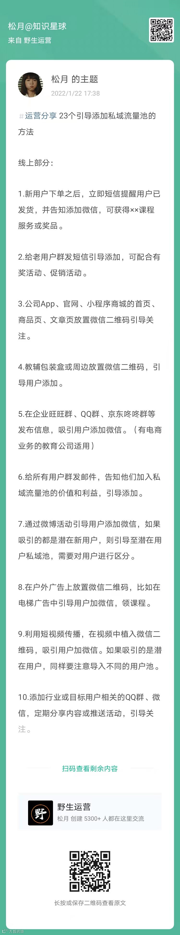 23、松月:23个引导添加私域流量池的方法(扫码看全文)