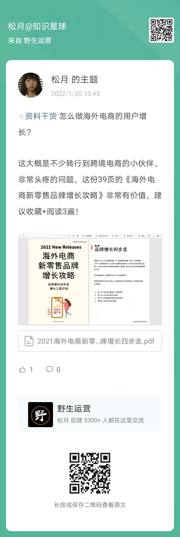 野生运营知识星球,每周会产生大量精华内容,每周一为你整理《野生运营:一周星球内参》,让你不错过任何一条有价值的信息。话不多说,这就开始!