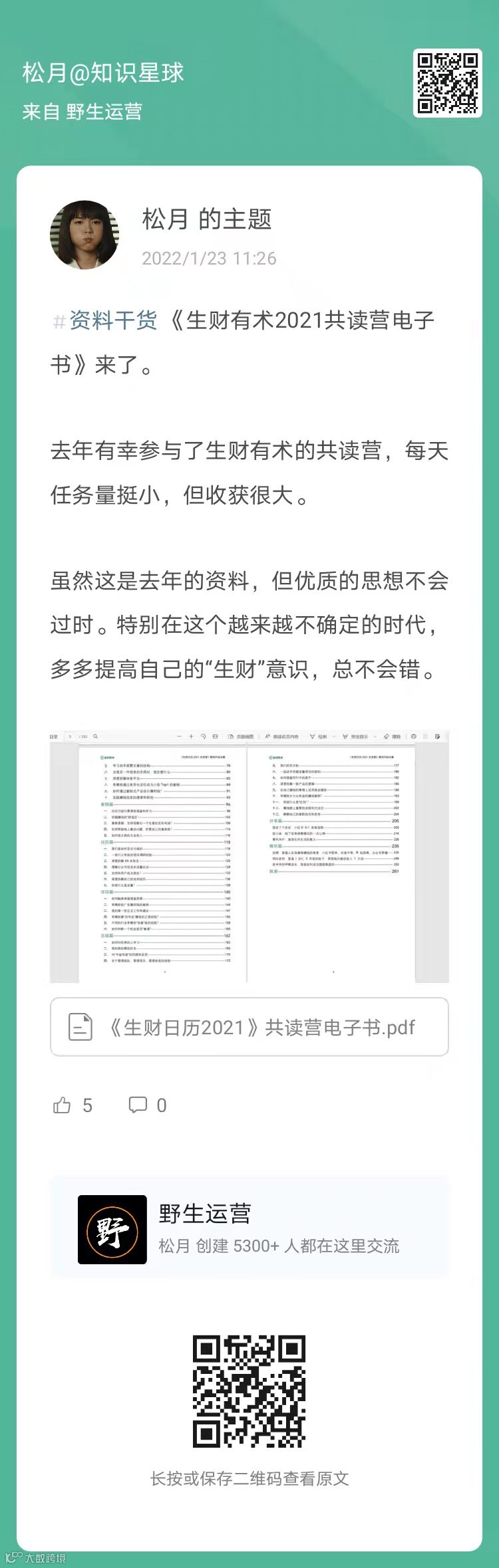 25、松月: 《生财有术2021共读营电子书》(扫码看全文)
