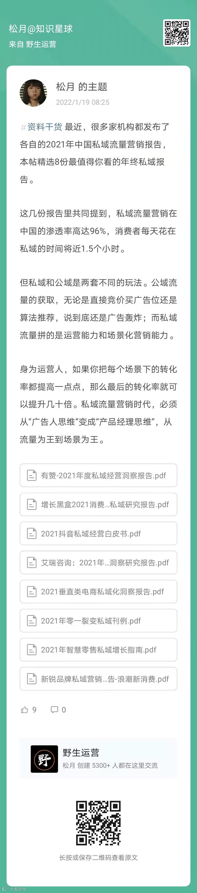 7、松月:最值得看的8份2021年中国私域流量营销报告(扫码看全文)