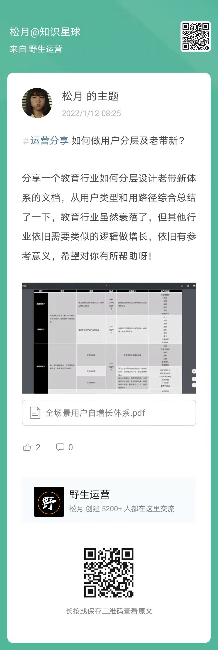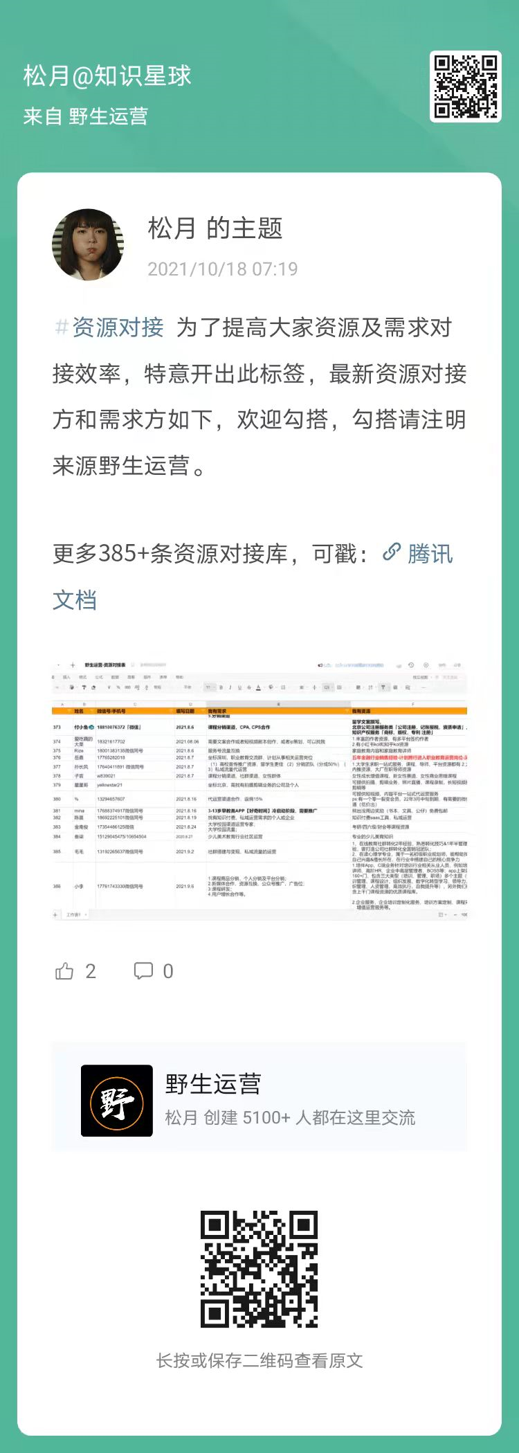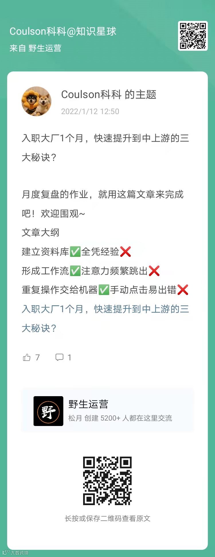 野生运营知识星球,每周会产生大量精华内容,每周一为你整理《野生运营:一周星球内参》,让你不错过任何一条有价值的信息。话不多说,这就开始!