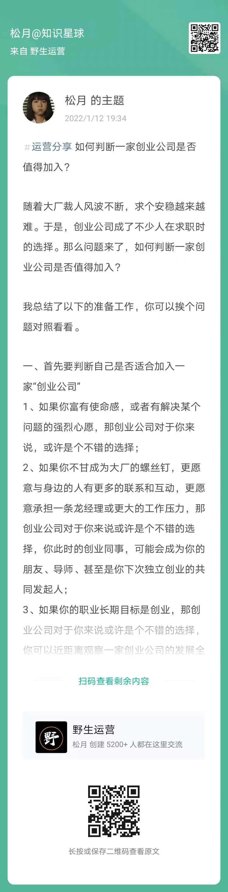 14、松月:如何判断一家创业公司是否值得加入?(扫码看全文)