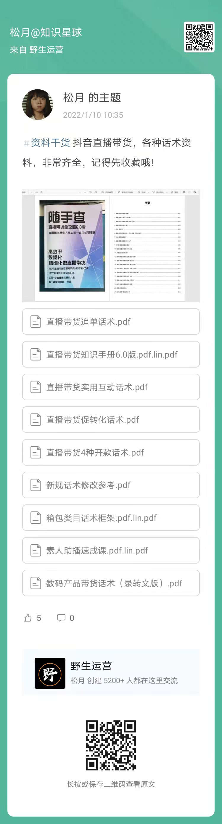 1、松月: 抖音直播带货,各种话术资料(扫码看全文)