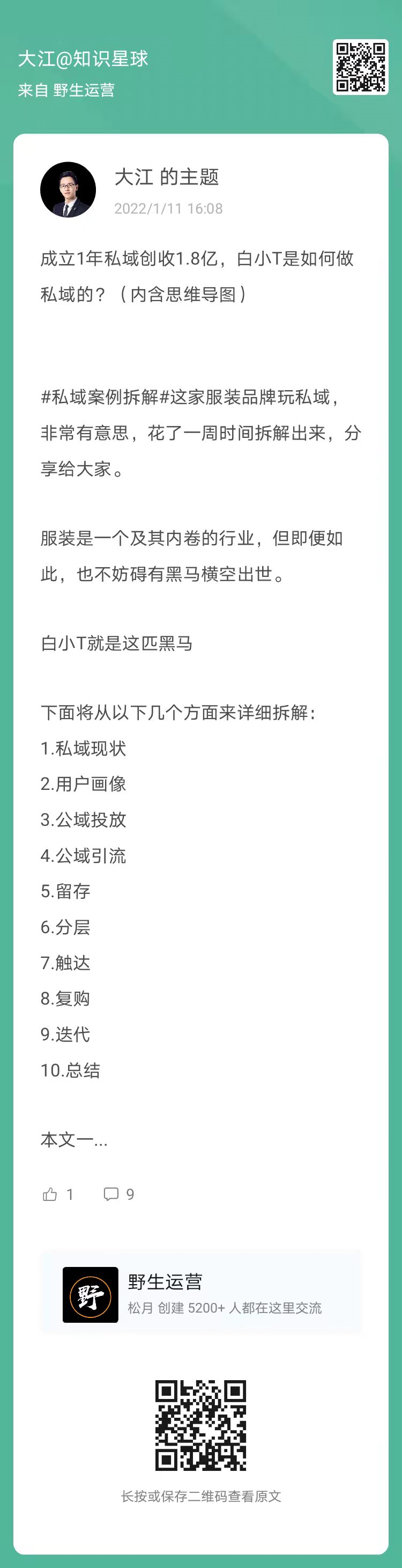 8、大江:成立1年私域创收1.8亿,白小T是如何做私域的?(扫码看全文)