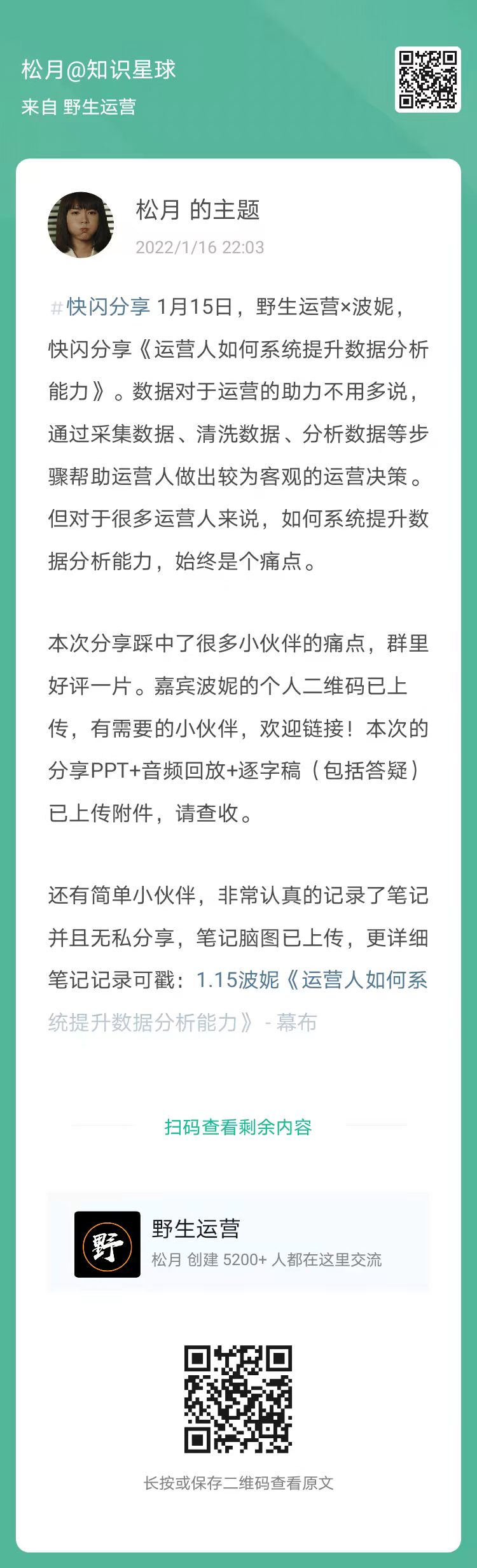 27、野生运营×波妮,快闪分享《运营人如何系统提升数据分析能力》(扫码看全文)
