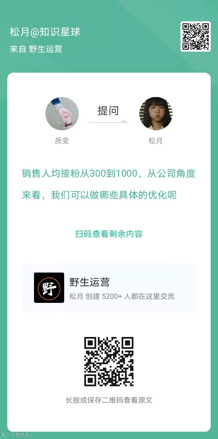 1、提问:销售人均接粉从300到1000,从公司角度来看,我们可以做哪些具体的优化呢?(扫码看全文)