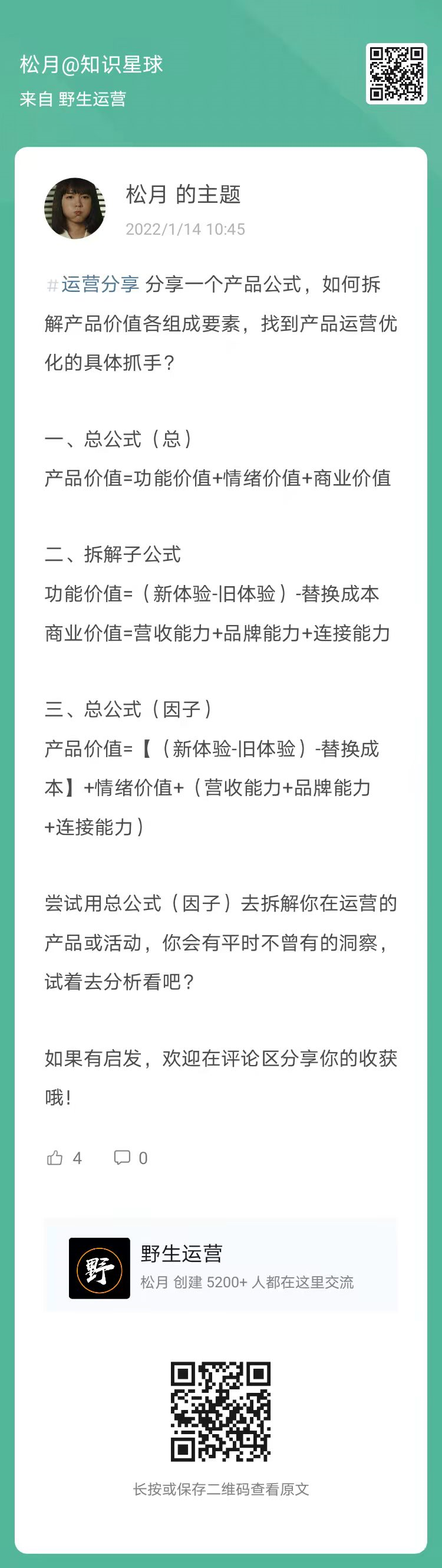 20、松月:分享一个产品公式,如何拆解产品价值各组成要素,找到产品运营优化的具体抓手?(扫码看全文)