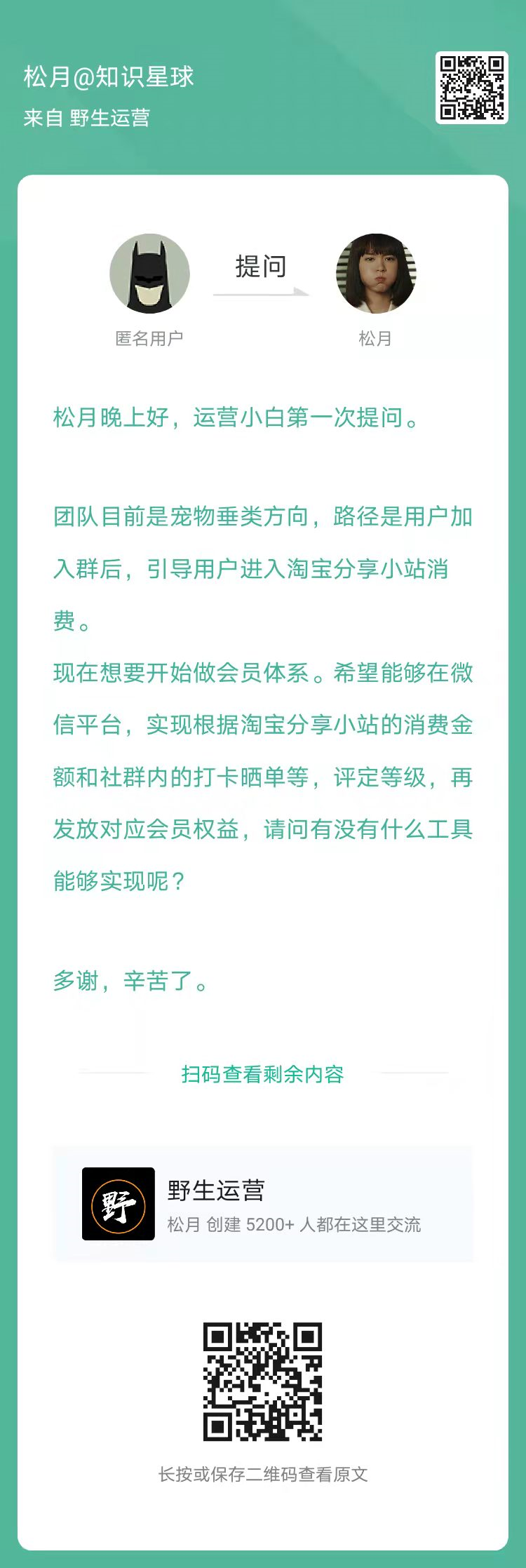 2、提问:现在想要做会员体系,请问有没有什么工具能够实现呢?(扫码看全文)