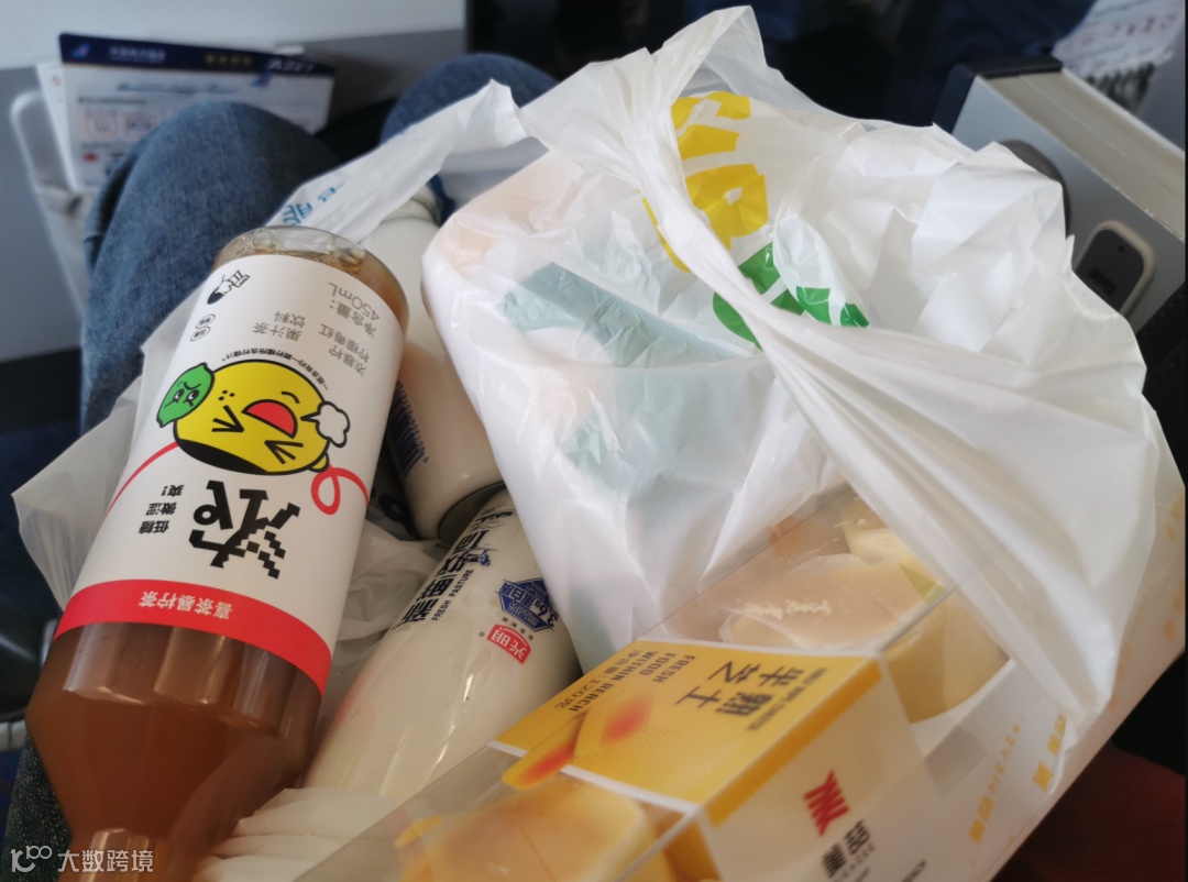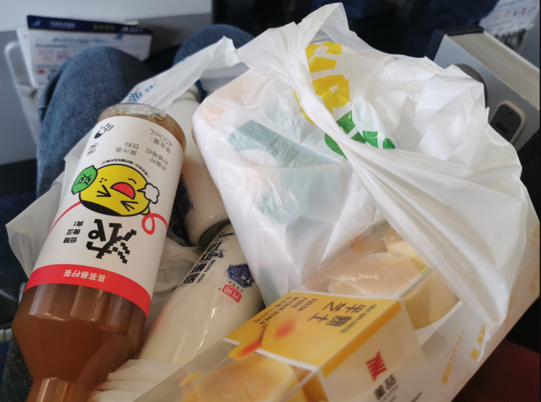 上飞机前,我在机场买了一大袋今日口粮:赛百味、半熟芝士、喜茶、鲜牛奶……一大兜子,一天都要在机场过,多准备点吃的肯定没错:
