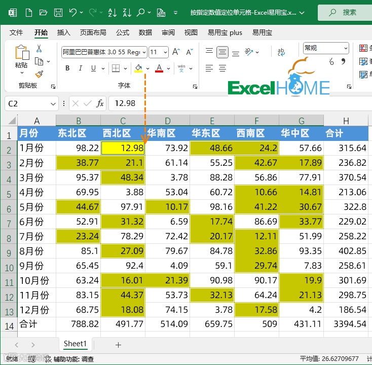 老板说能不能把这个表格中10~50的数据显示一个颜色,好让我对销售情况做分析,对下一步的销售做决策。