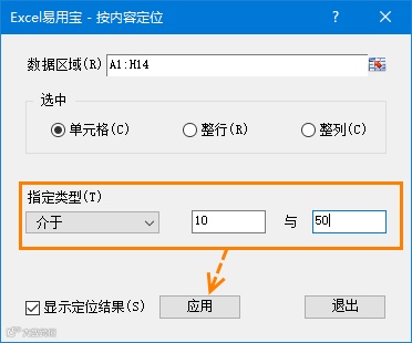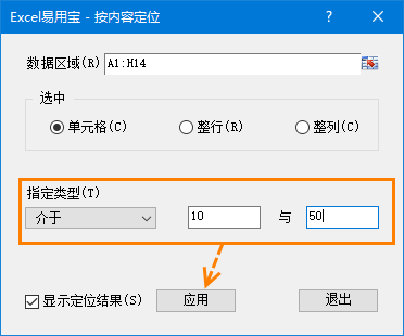 这样就可以选中10~50之间的数据,然后再为这些数据填充一个颜色就可以了。