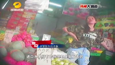 商家大大方方承认,标签就是自己贴的。在水果表面贴上一个进口标签,国产水果就摇身一变成了“洋水果”,身价倍增。
