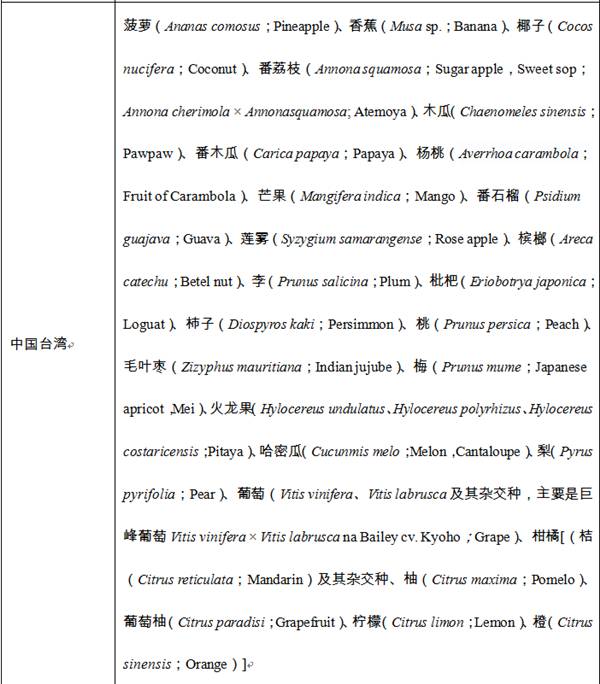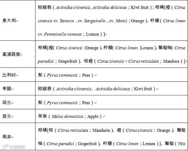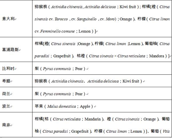 (1) 水果名称按照中文名、拉丁学名和英文名顺序表示,拉丁学名为斜体。