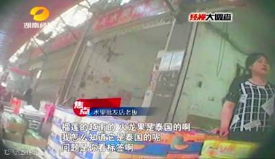 通过查询,越南的榴莲没有获准进入国内水果市场,泰国的火龙果也没有获准进入我国市场。随后,进入这家批发商贩的仓库发现,这箱所谓泰国进口的“火龙果”其实是国内的箱子。